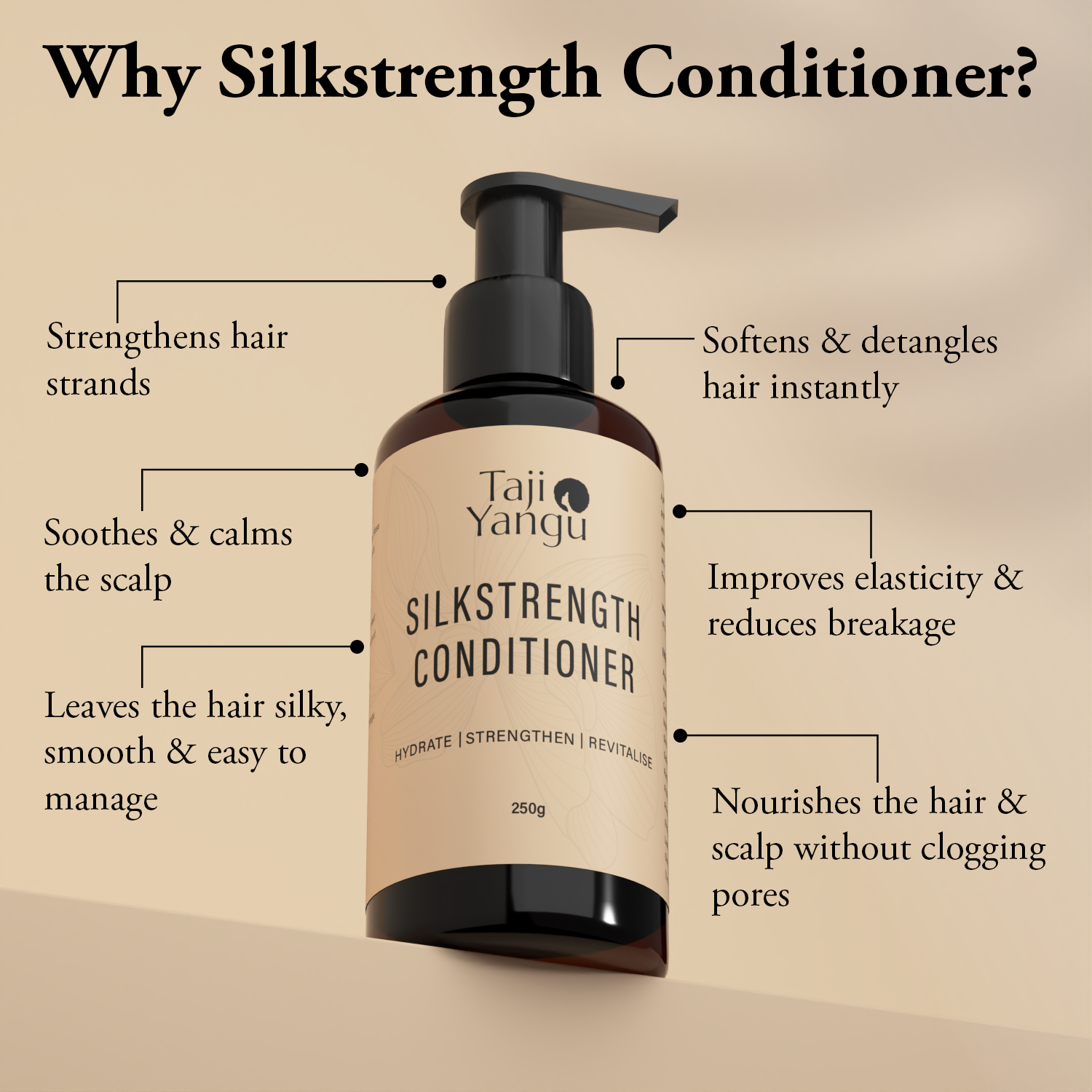 Introducing SilkStrength Conditioner — a powerful, ultra-moisturizing, protein-rich conditioner made specifically for natural hair, relaxed hair, textured hair, and protective styles. Whether you're dealing with dryness, split ends, shedding, or scalp irritation, this is your rescue in a bottle.